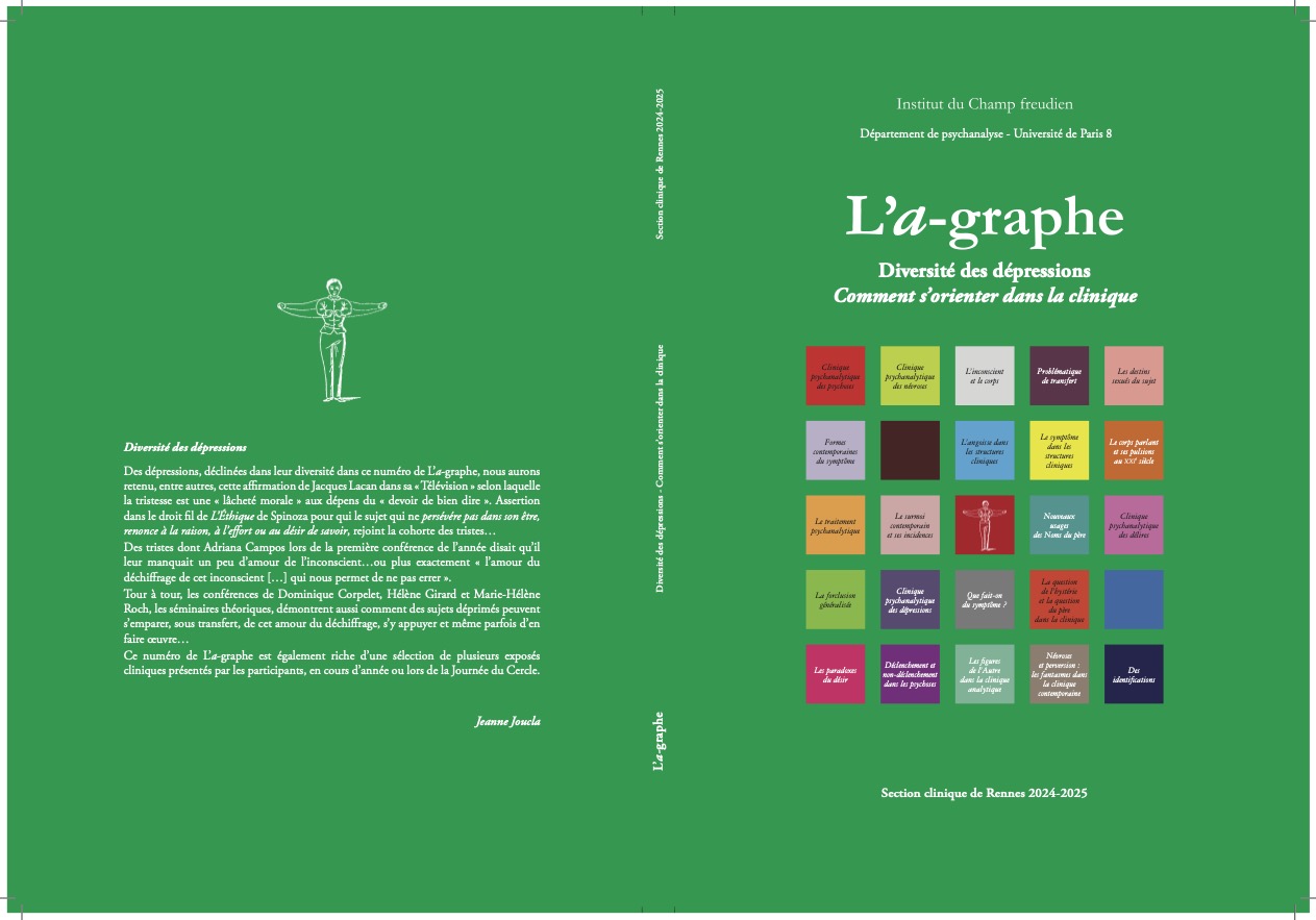 Suite à quelques années d’interruption, la Section clinique de Rennes a repris, après Spicilège, la publication des conférences, des séminaires théoriques et de quelques-uns des cas cliniques exposés.